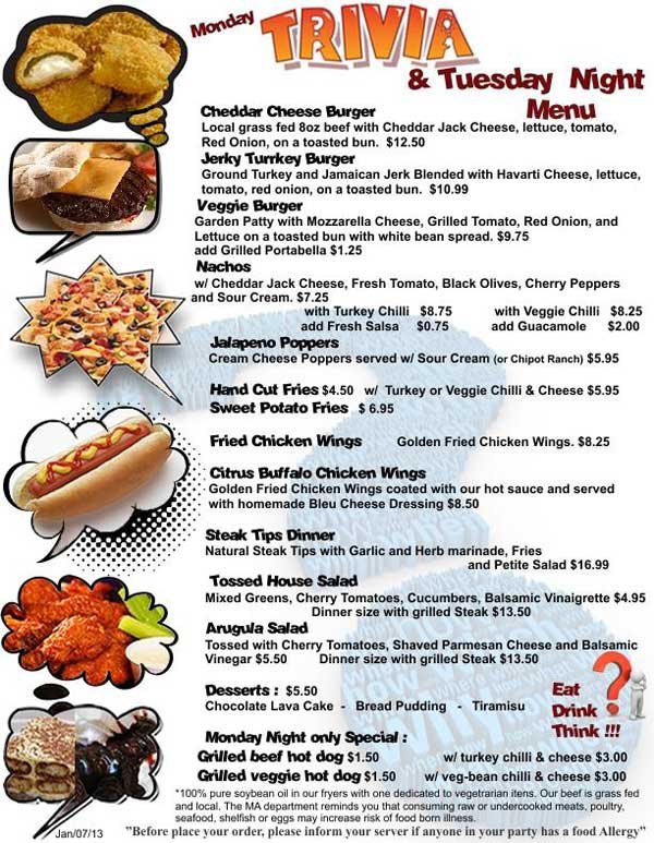 • Bar and beverage menus